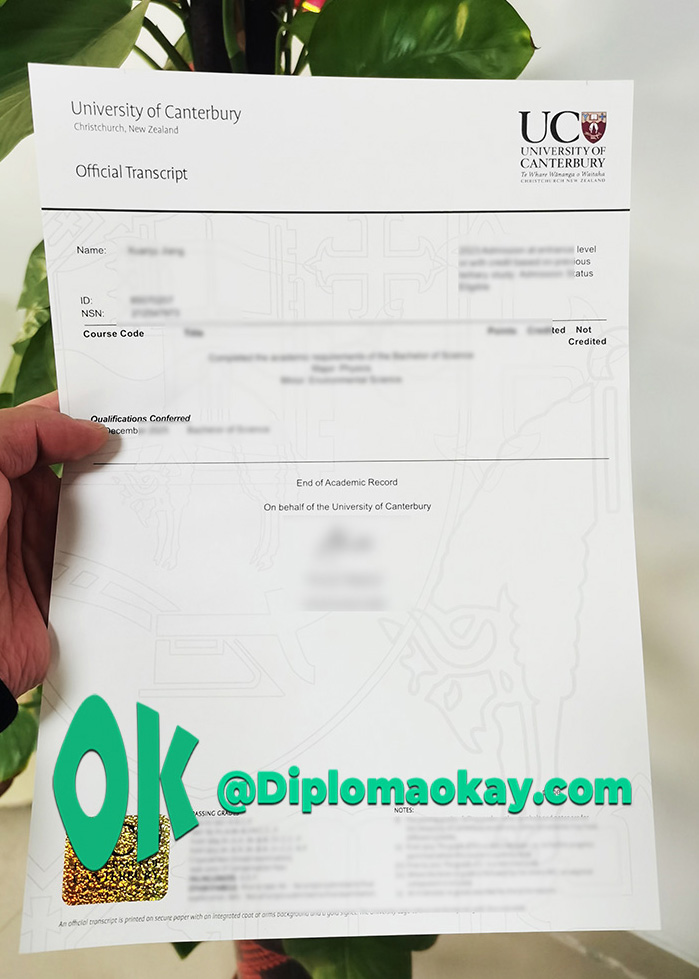 坎特伯雷大学(University of Canterbury,简称UC)是新西兰历史第二悠久的公立研究型大学,其前身是1873年由牛津大学和剑桥大学学者共同创立的坎特伯雷学院,1961年正式独立为大学,1975年迁至基督城郊区的艾拉姆(Ilam)校区。如今,这所占地76公顷的大学坐落在有“花园城市”美誉的基督城,背靠南阿尔卑斯山,面朝太平洋,校园内既有现代化的教学设施,也有葱郁的园林景观,为学生营造了兼具学术氛围与自然美感的学习环境。作为新西兰首所获得QS五星认证的大学,坎特伯雷大学在2026年QS世界大学排名中位列全球第261位,新西兰第5位,跻身全球高校前2%,其学术实力与国际认可度可见一斑。定制坎特伯雷大学成绩单,坎特伯雷大学成绩单制作,坎特伯雷大学成绩单购买,坎特伯雷大学成绩单复刻,推荐文凭购买公司diplomaokay.com.在线进行高仿坎特伯雷大学成绩单,坎特伯雷大学假成绩单,新西兰大学成绩单购买。