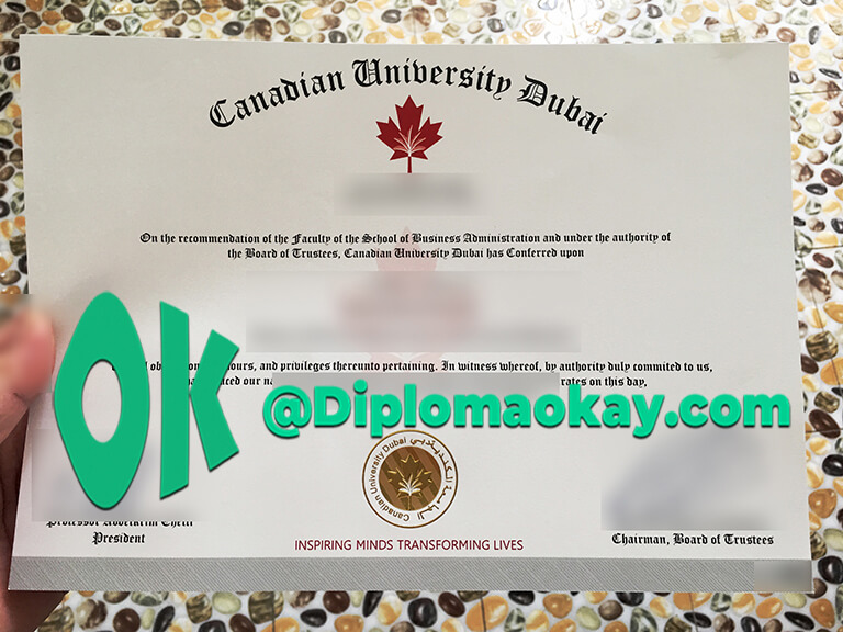 以上描述论断完全代表本站《毕业证办理机构》diplomaokay.com的观点和立场,本文任何内容不得转载或用于商业目的。如有任何描述或见解存在瑕疵或需要补充,我将感激指正。面临留学挂科、中途退学、成绩分数不理想等问题,欢迎随时与我们交流,本站所有案例均为真实原版,如需查看高清实物效果图,请联系客服。迪拜加拿大大学毕业证制作,推荐迪拜毕业证制作机构。买大学毕业证、买大学成绩单、修改成绩单分数、文凭复刻、假文凭制作、假成绩单制作、大学录取通知书、Studentcard、雅思成绩单、托福成绩单等材料,不论是遗失补办还是证件破损,都可以找我们1:1复制。很多升学或求职单位需要提供经过认证的学历资料,我们也可以协助处理。同时办理留信认证,海牙认证也是我们的主要业务范围。针对那些无法提供正式毕业证的申请人,我们提供全套材料办理。如需加急处理,请提前告知,正常情况需要5个工作日左右完成订单,加急处理通常会在24小时之内完成并且邮寄。急客户之所急,为客户提供良好的售前和售后服务,也是本机构一贯的宗旨。