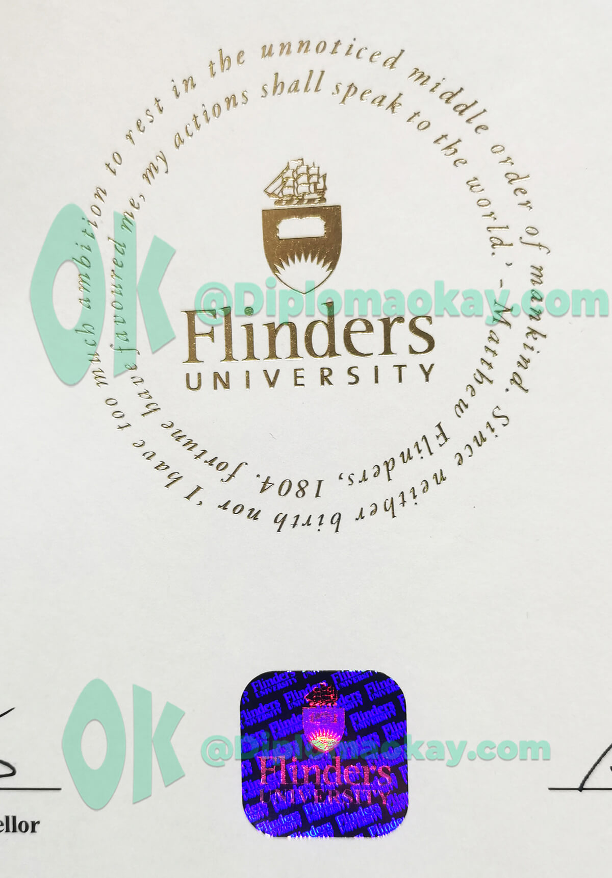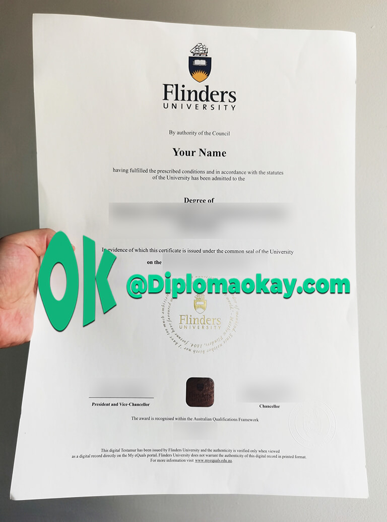 弗林德斯大学(Flinders University)创建于1966年,以1802年探索南澳海岸的英国航海家马修·弗林德斯命名,是澳大利亚南澳州的公立综合性研究型大学,也是澳大利亚创新研究大学联盟成员。学校以“创新、杰出与公平”为宗旨,校训“FOREVER FEARLESS”(永远无畏)彰显其进取精神。学校主校区贝德福德公园校区坐落于阿德莱德市山丘上,距市中心约12公里,俯瞰圣文森特湾,环境优美。此外还有唐思雷校区和阿德莱德市中心校区。唐思雷校区是计算机科学、工程和数学领域的教学与研究中心,配备2000平米重型工程设备舱;市中心校区交通便利,周边汇集政府、金融及创意产业机构,为学生提供贴近行业的学习环境。弗林德斯大学文凭购买,弗林德斯大学毕业证制作,弗林德斯大学毕业证定制,弗林德斯大学学位定制,推荐文凭购买公司diplomaokay.com.在线进行高仿弗林德斯大学文凭,弗林德斯大学假学历,澳洲大学文凭购买。