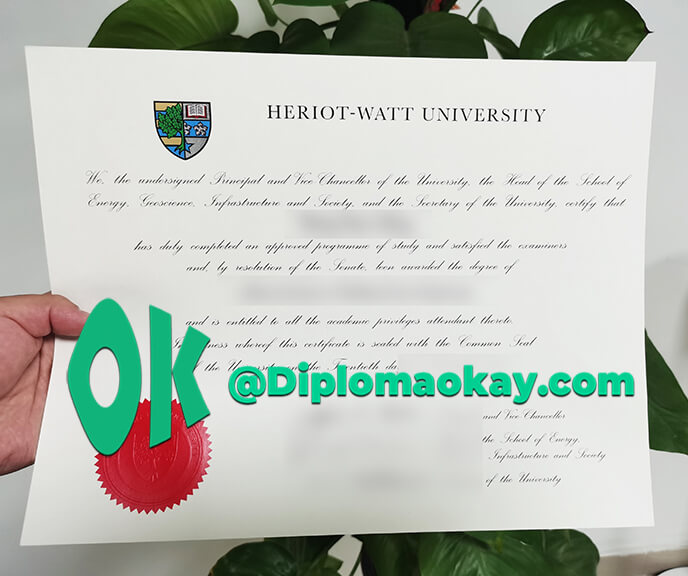 以上描述论断完全代表本站《毕业证办理机构》diplomaokay.com的观点和立场,本文任何内容不得转载或用于商业目的。如有任何描述或见解存在瑕疵或需要补充,我将感激指正。面临留学挂科、中途退学、成绩分数不理想等问题,欢迎随时与我们交流,本站所有案例均为真实原版,如需查看高清实物效果图,请联系客服。赫瑞-瓦特大学毕业证制作,推荐英国毕业证制作机构。买大学毕业证、买大学成绩单、修改成绩单分数、文凭复刻、假文凭制作、假成绩单制作、大学录取通知书、Studentcard、雅思成绩单、托福成绩单等材料,不论是遗失补办还是证件破损,都可以找我们1:1复制。很多升学或求职单位需要提供经过认证的学历资料,我们也可以协助处理。同时办理留信认证,海牙认证也是我们的主要业务范围。针对那些无法提供正式毕业证的申请人,我们提供全套材料办理。如需加急处理,请提前告知,正常情况需要5个工作日左右完成订单,加急处理通常会在24小时之内完成并且邮寄。急客户之所急,为客户提供良好的售前和售后服务,也是本机构一贯的宗旨。