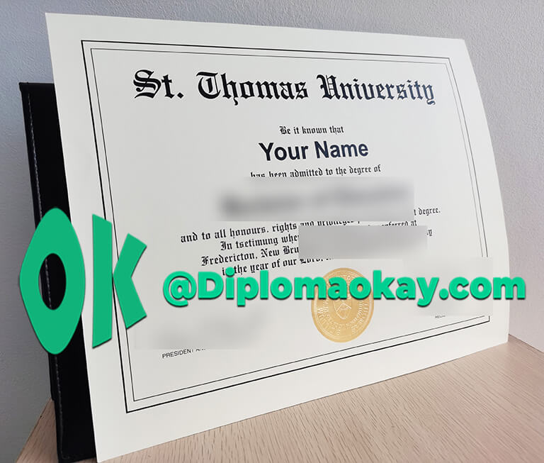 以上描述论断完全代表本站《毕业证办理机构》diplomaokay.com的观点和立场,本文任何内容不得转载或用于商业目的。如有任何描述或见解存在瑕疵或需要补充,我将感激指正。面临留学挂科、中途退学、成绩分数不理想等问题,欢迎随时与我们交流,本站所有案例均为真实原版,如需查看高清实物效果图,请联系客服。圣托马斯大学毕业证购买,推荐加拿大毕业证购买机构。买大学毕业证、买大学成绩单、修改成绩单分数、文凭复刻、假文凭制作、假成绩单制作、大学录取通知书、Studentcard、雅思成绩单、托福成绩单等材料,不论是遗失补办还是证件破损,都可以找我们1:1复制。很多升学或求职单位需要提供经过认证的学历资料,我们也可以协助处理。同时办理留信认证,海牙认证也是我们的主要业务范围。针对那些无法提供正式毕业证的申请人,我们提供全套材料办理。如需加急处理,请提前告知,正常情况需要5个工作日左右完成订单,加急处理通常会在24小时之内完成并且邮寄。急客户之所急,为客户提供良好的售前和售后服务,也是本机构一贯的宗旨。